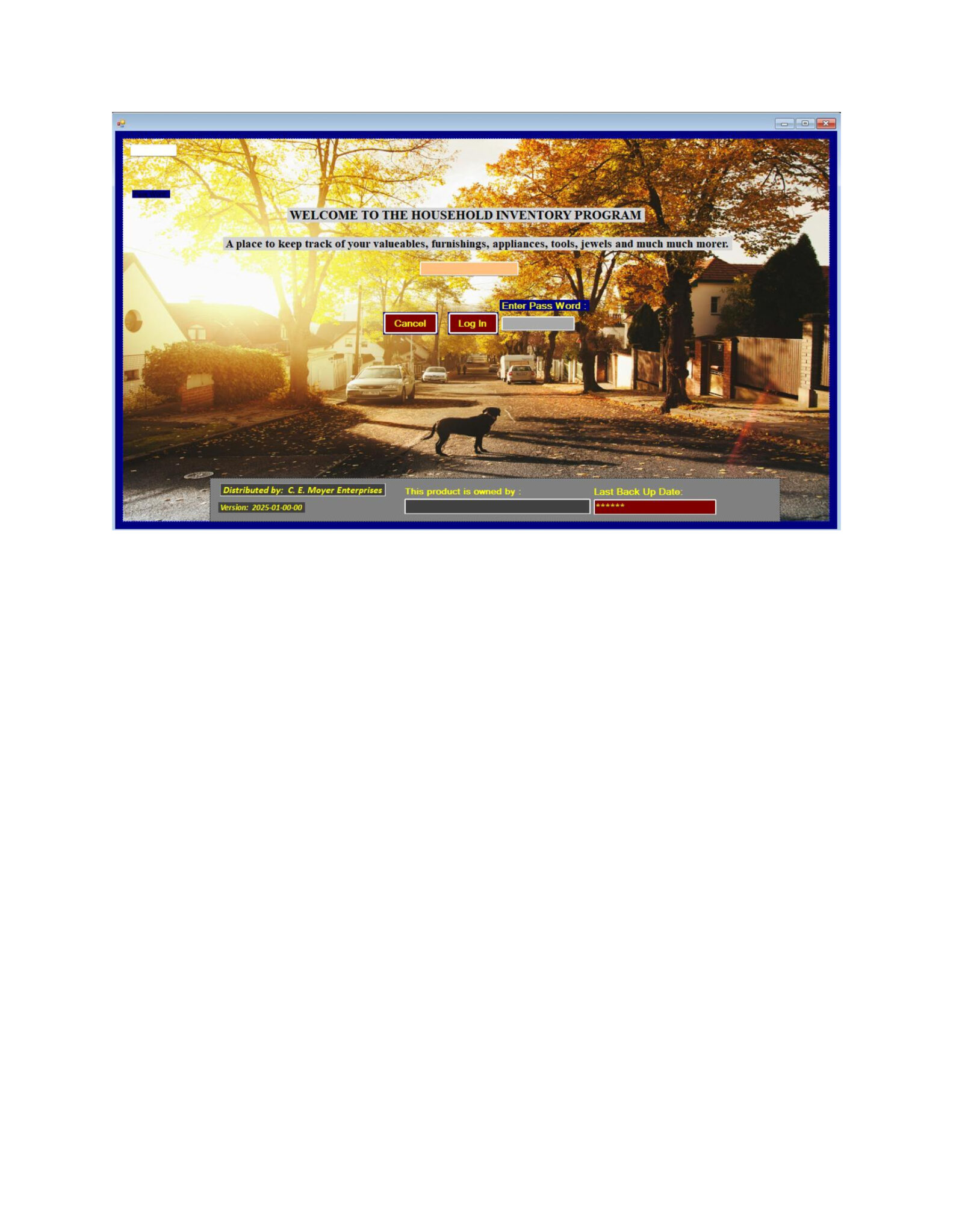 This is the welcome page to the HHI software.